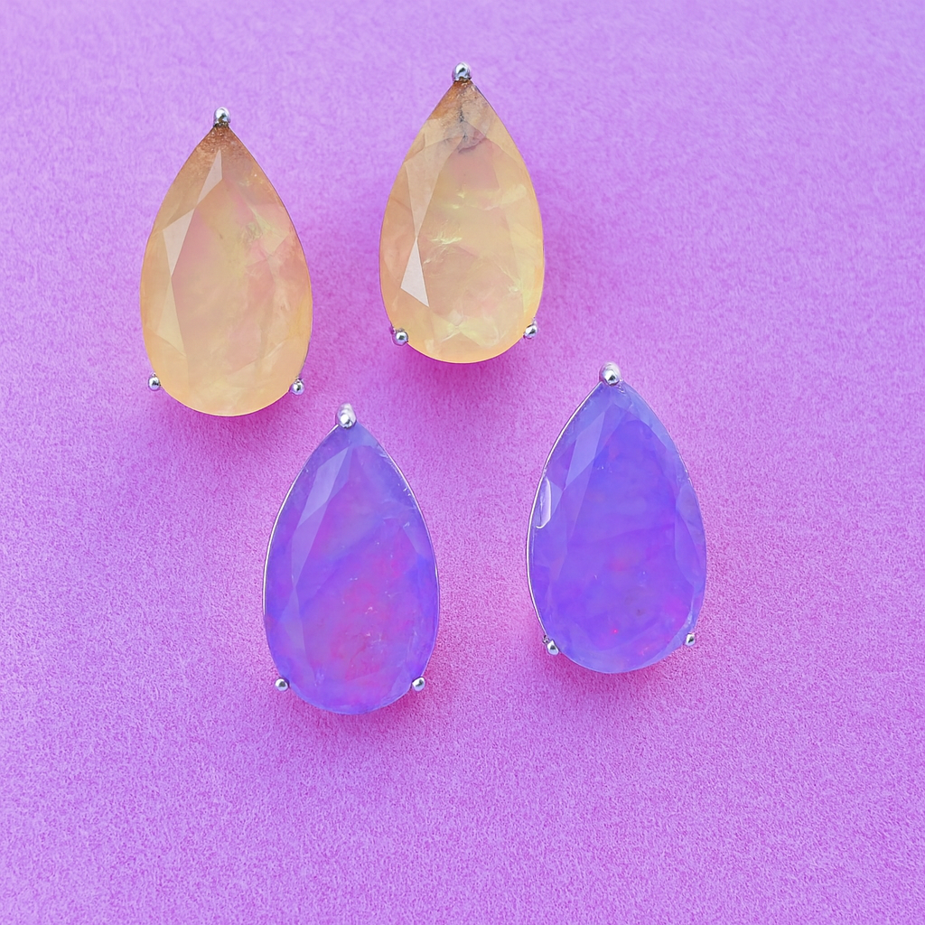 Elevate your style with the Ethereal Teardrop Gemstone Earrings, a stunning blend of elegance and natural beauty. Featuring delicately faceted gemstones in two captivating shades – warm champagne and radiant amethyst-purple – each earring is cradled in sleek silver prongs, allowing the light to dance with every movement.